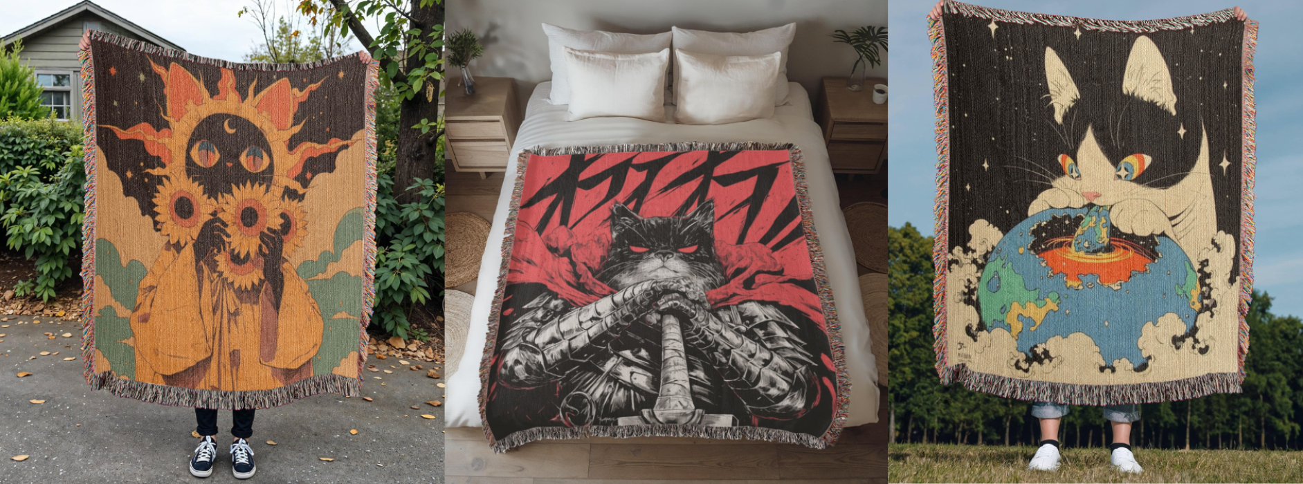 We’re a small creative studio dedicated to transforming your space into a purr-sonal haven of comfort and charm. Our specialty? High-quality woven blankets featuring playful, artful, and personality-packed cat designs that make you smile the moment you curl up.